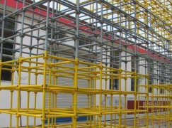 4、多功能:能根据具体施工要求,组成不同组架尺寸、形状和承载能力的单、双排脚手架,支撑架,支撑柱,物料提升架,爬升脚手架,悬挑架等多种功能的施工装备。也可用于搭设施工棚、料棚、灯塔等构筑物。特别适合于搭设曲面脚手架和重载支撑架。
